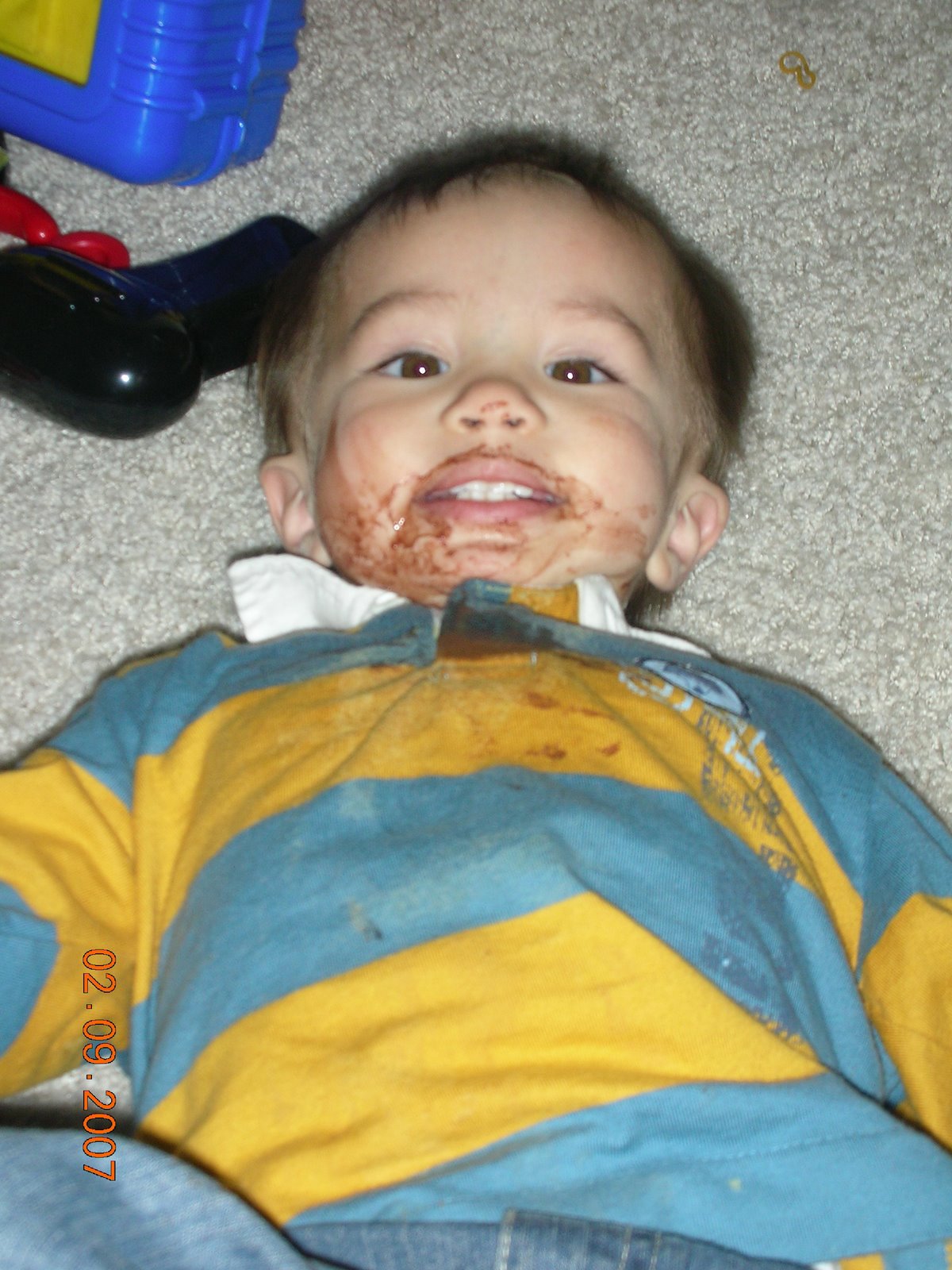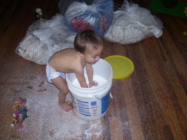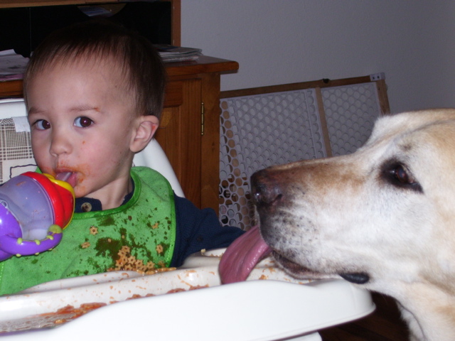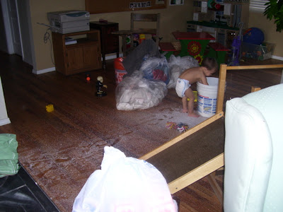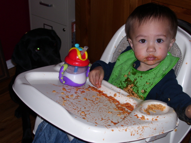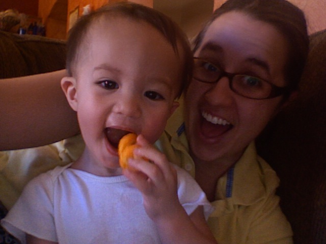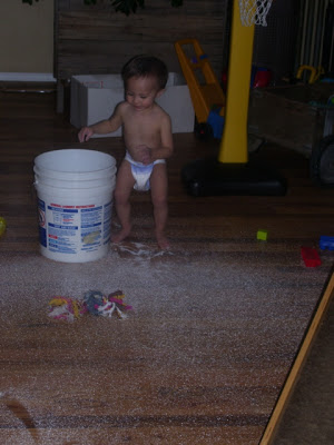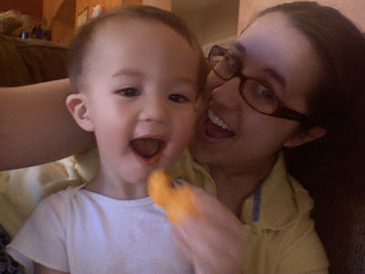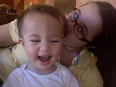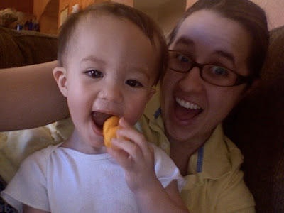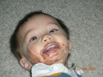 The night almost ended perfect. We went and picked up Brandon and he was all tuckered out from playing with Papa and he passed out on the drive home. We got him in bed, got ourselves in bed and where seconds from blissful sleep when he woke up screaming bloody murder. He was having a tooth issue. I had to give him two doses of orajel and some Motrin and it still took nearly 20 minutes for him to calm down. When this happens he starts twitching around like he is having seizures and wont let you touch him. Finally I grabbed him and went to the rocker and he passed right out from all the insanity. It was so scary because he was crying so hard he was causing his face to swell. This led me to run around freaking out that I had somehow touched peanut butter or something at dinner and that I was going to be my sons kiss of death. He ended up fine but was pretty wiggly all night.