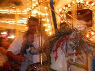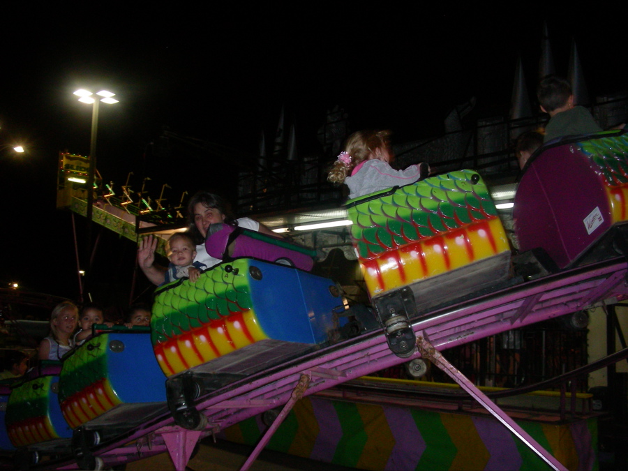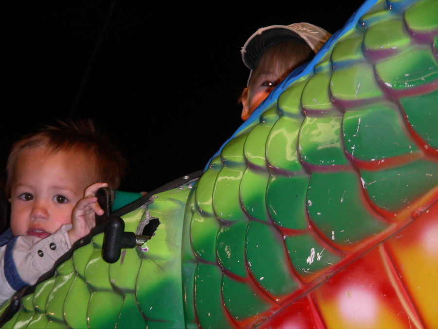 Brandon on the roller coaster. He refused to get off and was so mad he had to wait in line. Then once he learned he would get really excited to get off and get back in line and go again and again and again.