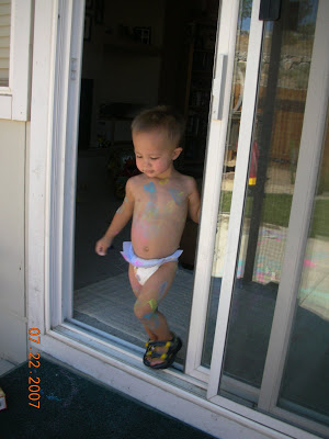 Then he got bored and stuck all his magnet letters in the water trap on my refrigerator, put the light cover from inside my fridge into a cabinet and finger painted with a tub of cream cheese (can’t believe I didn’t get pictures of that)