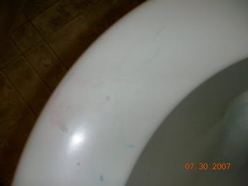 Toilet seat…check…thats right, since he was splashing in the toilet and his markers are washable everything he touched after wards turned blue and red, including my toilet paper.