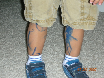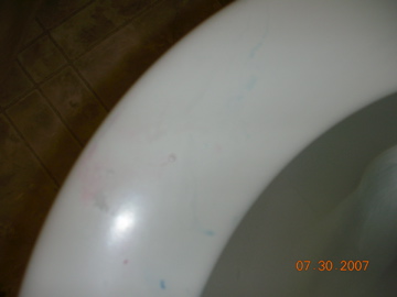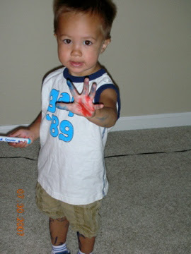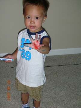 Toilet seat…check…thats right, since he was splashing in the toilet and his markers are washable everything he touched after wards turned blue and red, including my toilet paper.