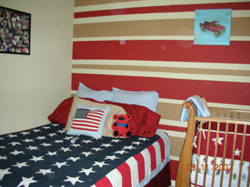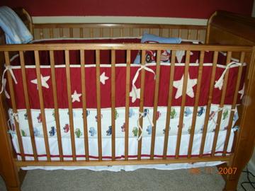 The crib looks adorable, but that American flag cover on the bed is a little scary.