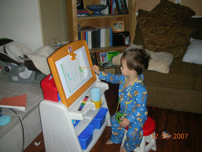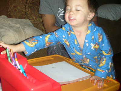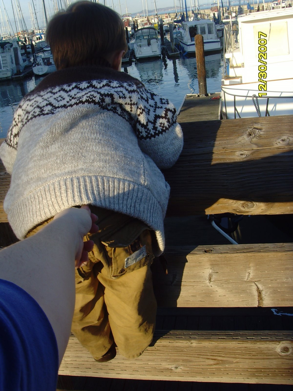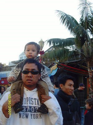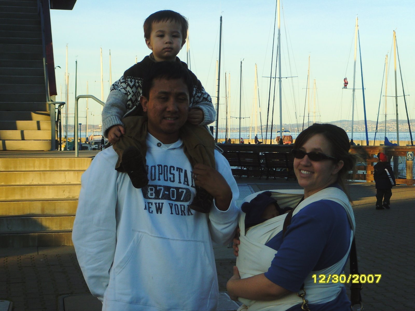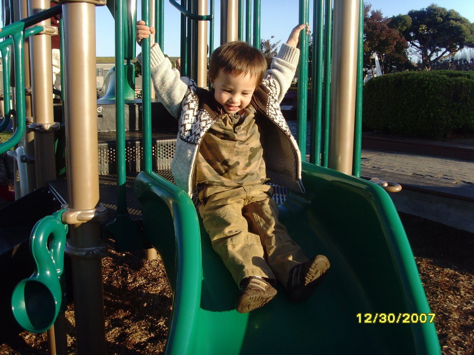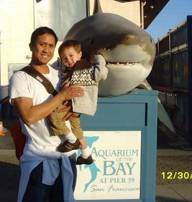 We are home now. We had an amazing weekend. Brandon got to go to the pier. We got to walk down the road and let the Bush Man scare the shit out of him. He got to visit Joes Crab Shack and see the sea lions up close and personal. We got to walk through all the shops and see the carosel and go to the aquarium and walk right beneath the sharks and pet the starfish (he did not get to pet the sting rays because somehow he managed to find a penny and throw it in there and we got in huge trouble, they were all on their walkie talkies calling a code 79er roger doger so we ran). He got to play at the park on the pier and look out into the ocean at all the BIG BOATS! We then drove home over the Bay Bridge and saw it all decorated with Christmas lights. Brandon had an amazing trip. He won’t remember it but I will. I will remember that even though my chest was tight the whole time and I was wishing for a Valium my son was having the best day ever!