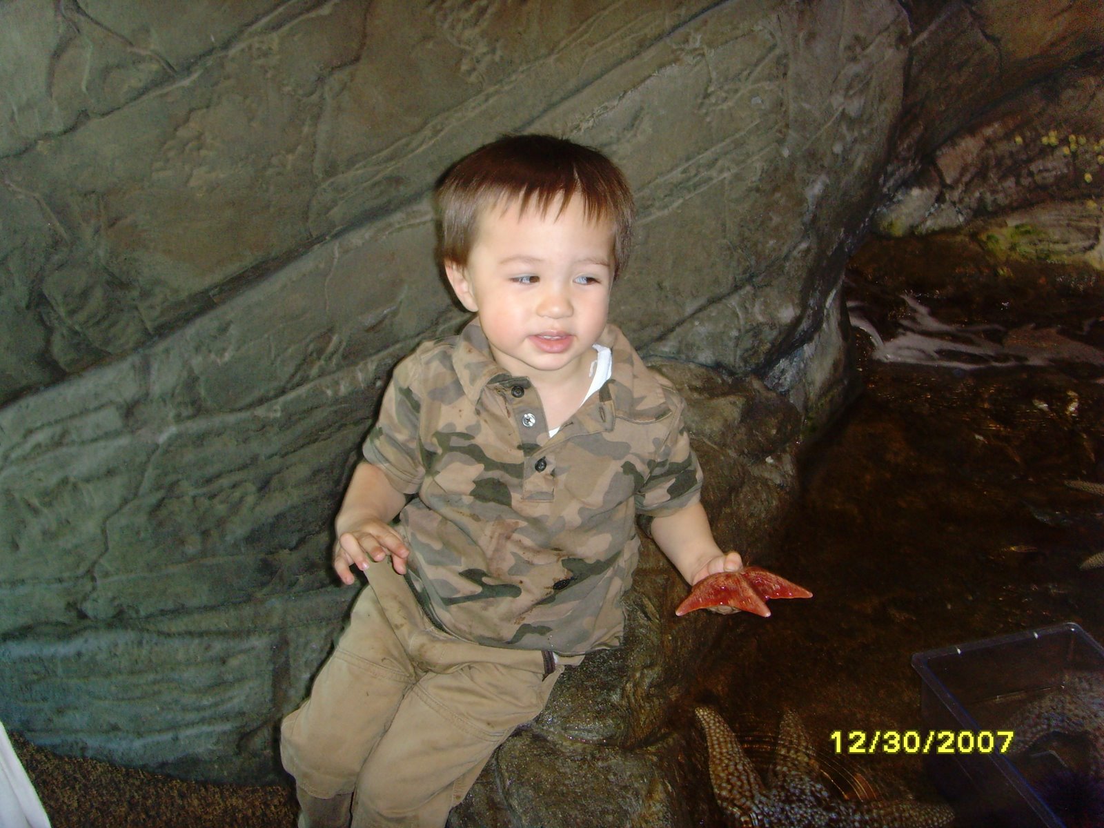 (I was afraid to let him pet the shark. We went to pet the stingrays and Brandon somehow found a penny and threw it in the water, all the employees started freaking out and got on their radios screaming we have a code 87 6er roger doger penny in the ray pool send the infantry..everyone started giving us dirty looks so we ran to the safety of the starfish)
