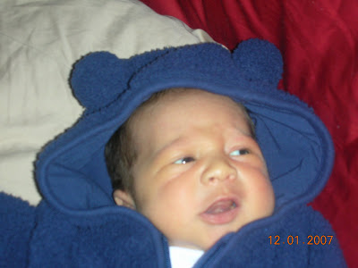 oh my goodness his belly is big in that last picture!!! gotta love those buddah bellies!!!=)glad the onesie fit, even if just for a little while.