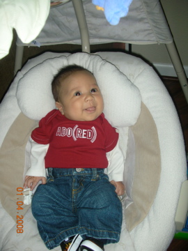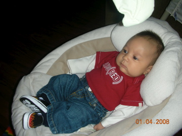 I get Codi all ready to go, nurse him so his belly is full, pack up his little snow suit and off we go. I get in the car and POOF it starts snowing it isn’t bad but it’s still snowing and there was already about 4 inches on the ground. I sit in my driveway for about 8 minutes assessing the situation. I finally decide that no matter how much I want to buy my mom that Napoleon driving all the way across town was just not safe (I think she would appreciate a live child and grand child more then a pastry..I hope). I also decide to knix Kohls. I head to Babies R Us to buy this chair. I spend about 20 minutes in the chair isle looking at all the other chairs because they don’t have the one I want. I’m pretty annoyed so I go around the whole store getting everything else. That is also where I stumble upon 5 new bedding sets by new brands that are all totally awesome and that were not there a short 4 months ago when I bought bedding. This pissed me off more and add that to my anger over the chair, well, lets just say I was getting feisty. I went back to the chair isle and hemmed and hawed some more before finally getting pissed and leaving. Do you know why I couldn’t find the chair? Go look at it again, notice anything, anything over there on the right? Like the words ONLY AVAILABLE ONLINE! Yeah I must have eating a bowl of retard soup for breakfast. I find this extra funny because I had stared at that fucking chair no less then 8 times and I always look for the available online only thing. Again, the retard soup must have got me.