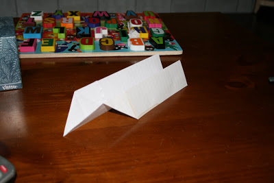 At this point my husband walks out and sits on the couch. He looks down at the floor and then says, “what the fuck is that?” I’m busy in the kitchen and I look up wondering what he is talking about. He bends down picks up my flaccid piece of paper airplane with a smirk on his face and repeats, “Shannon, seriously, what is this?” I told him it was Brandon’s airplane. He erupted into laughter, grabbed a piece of paper and went to work creating this. An airplane that flies!