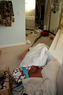 I wanted to take pictures of the house to update the Clusterfuck blog but then we started moving in and it got a little messy so I didn’t. Tomorrow I am going to do a quick clean so I can take photos and give you and idea of how fucking amazing this place is. Seriously. You can’t even understand where I’m living. The colors came together just right and the rooms and the accessories and the hardwood floors, well I’m just saying WHERE HAVE THESE FLOORS BEEN ALL MY LIFE? Hard wood is different then Pergo too. Especially these because they are old so there is dips and bends and history and it’s not just uniform. Some little updates and antics.