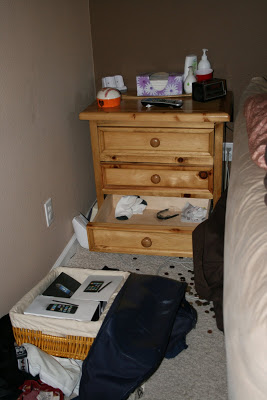 All of our food is still at the old house in the old refrigerator. So we have our pantry stocked and moved but as far as the rest of the food, well we have butter, creamer, ranch, and umm oh milk. We are eating like kings here. Jack in the Box, Taco Bell and Papa Murpheys. Yeah we are doing good. Last week we made some pasta and I made too much. I had some left in the fridge, just the bare noodles. The other night I was so hard up for dinner I put pasta, olive oil and garlic powder together and called it dinner.