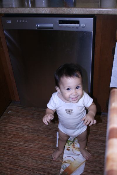 I’ve got the worst cold right now. One of the joys of having a kid in day care. He brings me a new germy present every week. Anyway I haven’t been sleeping good because of the coughing and the not being able to breath thwu my nose thing. Codi usually wakes up around 615-630. On good days he will let me know he is up by giving a big happy fart. Yesterday he did a big huge fart. I was kind of incoherant but I got up, peed and stumbled over to grab him. I reached down and felt his diaper which was soaking wet. I half walk half sleep walked into his room. Seeing the changing table was his cue to start wiggling like a fish out of water. I wrangled him down on the changing table and went to work pulling off the diaper while trying to also remove it fast enough that he didn’t grab it with his hands and kick his feet in it. Only, I was too slow and he did both. Damn. So I ripped it out faster and flung it over by the wipes.