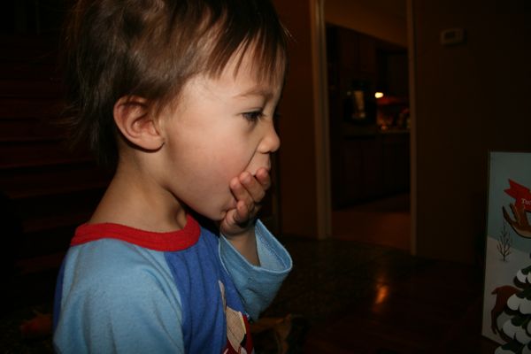 HAHAHA Huge ass piece of candy. My mom asked why I gave it to him this morning and not after dinner. Well that is easy, HE WOULD HAVE TO EAT DINNER FIRST. I told her, “He should eat it right when he wakes up because then there is no chance of him being in trouble yet, I wait till after dinner, he’d never get to eat it!”