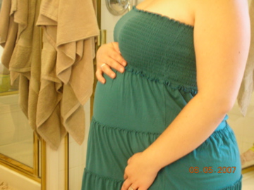 I blame it all on the dress because I spent most of the night feeling more like a stuffed sausage then a pregnant lady! Oh well, here are your damn belly pics, apparently I have on now.