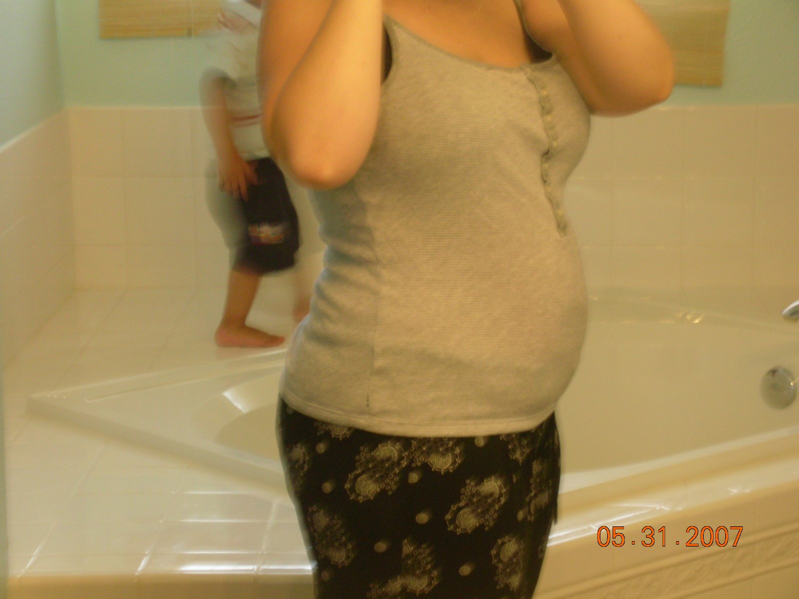 OKAY SO THAT ALL OF YOU WILL SHOOSH HERE ARE YOUR DANG PHATSO BELLY PHOTOS. SEEEEEEE I DON’T LOOK PREGNANT I LOOK LIKE I DID BEFORE I STARTED MY DIET. ANYWHO OBVIOUSLY MY BOOBS AREN’T TRIPLING IN SIZE QUITE AS FAST AS THEY DID LAST TIME. I HOPE THIS DOESN’T MEAN I ALREADY USED UP ALL OF MY MILK SINCE BRANDON WAS THE WORLDS MOST SUPER NURSER. (YES I’M ULTRA SUPER PARANOID THAT THIS CHILD MIGHT NOT NURSE AS WELL OR AS LONG!)