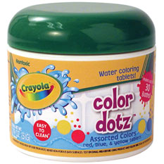 Color Dotz refills for Ozzie. I am glad I got these because it allowed me to experiment more with colors. They were also very reasonably priced at only $4.99 for 30 dots. They claim this makes 30 baths but come on I have to play more then one dot per bath so I assume it will probably last me about 10 baths using 3 dots per bath!